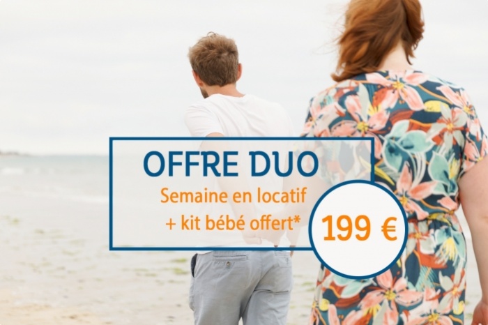 *Offre valable pour tout séjour du 28 août au 26 septembre 2021, pour toute réservation de 7 nuits minimum en mobil-home Family. Arrivée possible tous les jours. Deux personnes maximum par réservation, possibilité d'ajouter un bébé (- de 2 ans) en réservant par téléphone. Non cumulable avec d'autres promotions et non rétroactive, valable uniquement sur réservation, dans la limite des stocks disponibles et hors frais de dossier. Pour plus de renseignements, contactez-nous au 02 97 67 33 30 !
